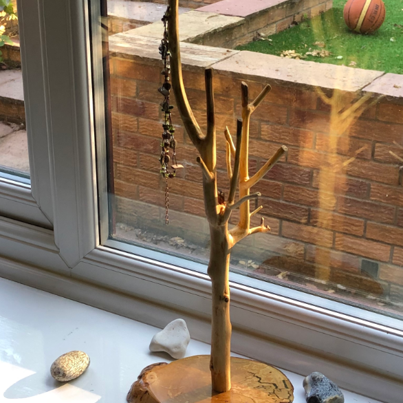 This striking jewellery holder was repurposed from an interesting shaped stick. Now showcased in a beautiful home in Sussex.